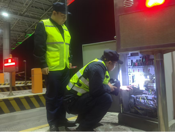 夜间巡查聚焦安全与畅通两大核心,覆盖收费区域全场景。巡查人员按照既定路线,重点对三大板块进行细致检查:一是收费设备运行情况,逐一排查收费系统、收费终端、栏杆机等设备的运行状态,确保无故障、无卡顿,保障车道正常通行;二是现场安全管理,检查收费票亭门窗锁具、夜间照明设施亮度,同时排查收费广场是否存在障碍物影响通行的隐患;三是人员在岗履职,查看值班人员在岗状态和文明服务规范执行情况,提醒做好夜间防寒保暖与自身安全防护,确保服务质量不打折扣。