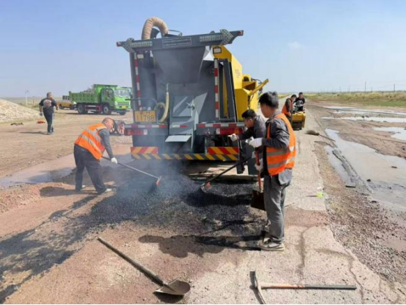 精细管养提升路况质量。坚持将提升路况质量作为服务群众出行的有力保障。针对入秋以来,降雨天气及道路车流量大等因素造成的路面坑槽等病害较多情况,组织专业养护人员实地勘察路况,及时采取“防治结合”的措施对路面病害进行处置,坑槽修补50余处,共计150余平方米;维修公路护栏26处,长度共计104米;有效提升道路通行品质。